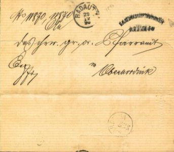 | Envelope sent ex offo from Radautz to Pfarramt in Oberhorodnik but postmark from Mardzina. | Envelope sent ex offo from Radautz ( nice administrative cachet) to Pfarramt in Oberhorodnik but postmark from Mardzina. |